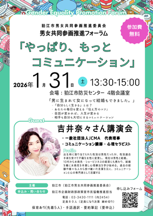 男女共同参画推進フォーラム 吉井奈々さん講演会「相手も自分も大切にするコミュニケーション」のお知らせ
