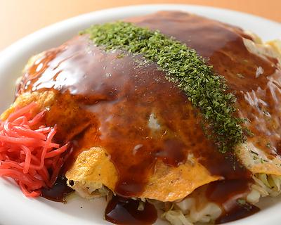 職人歴20年のベテランが焼きあげます。薄いクレープ状の生地の上にキャベツや豚肉、焼きそば、卵などを重ねて蒸し焼きにする「重ね焼き」が特徴の広島焼です。