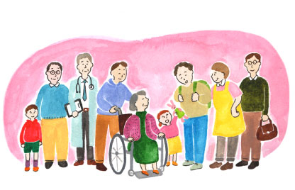 現在、狛江市第1期成年後見制度利用促進事業計画では、ご本人に身近な親族、福祉・医療、地域等の関係者と成年後見人等がチームとなって日常的にご本人を見守り、ご本人の意思や状況を継続的に把握し必要な対応を行っていくことを目指しています。その時々の課題に応じてチームを編成し、ご本人の意思を尊重して支援していきます。