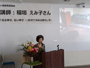令和5年2月11日(祝日)午後2時から、10年間におよぶインターネットの誹謗中傷による風評被害を受けたスマイリーキクチさんを講師にお招きして、人権啓発講演会を開催しました。