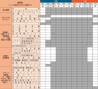 令和7年12月28日(日曜日)から令和8年1月3日(土曜日)は、原則、市の施設は閉館します。