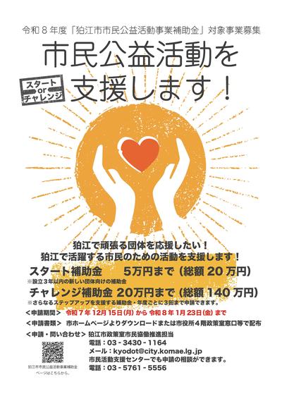 令和8年度狛江市市民公益活動事業補助金チラシ.pdf [ 1893 KB pdfファイル]