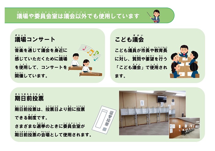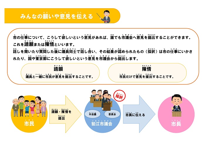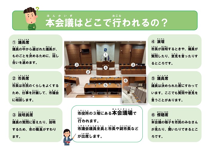 狛江市議会のしくみや役割について説明しています。ぜひ市議会の学習などでご利用ください。