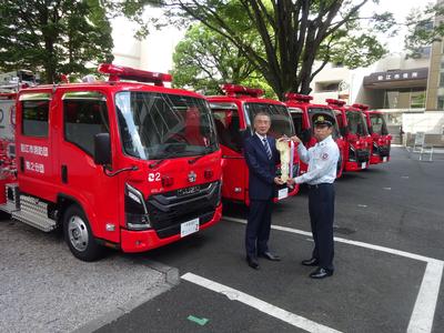 8月17日に狛江市消防団消防ポンプ車伝達式を執り行いました。