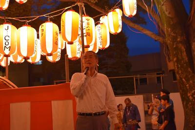 いずみ会 納涼盆踊り大会での挨拶の様子 |