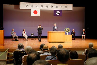 「健康と長寿を祝う会」で挨拶 (写真:k-press提供) |
