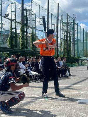 | 始球式ではバッターを務めました |